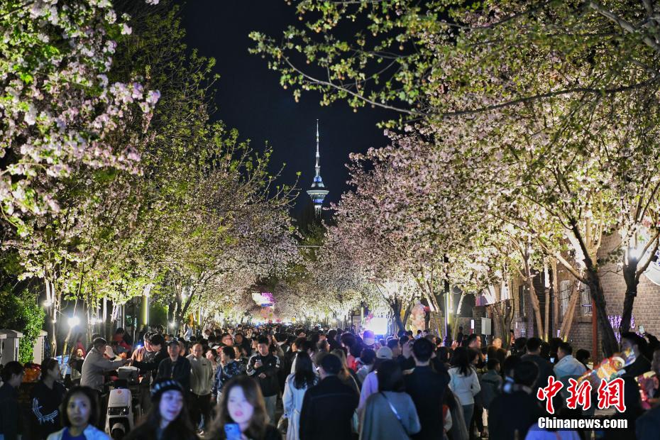 4月6日,天津市商务局发布数据,清明节假期期间,天津各区布置各类消费场景,将烂漫花期转为消费动能,监测的430家商贸流通企业3天累计客流量达779.3万人次,同比增长8.2%;累计实现销售额9.6亿元人民币,同比增长3.3%。图为4月5日,市民和游客在天津五大道夜赏海棠花。